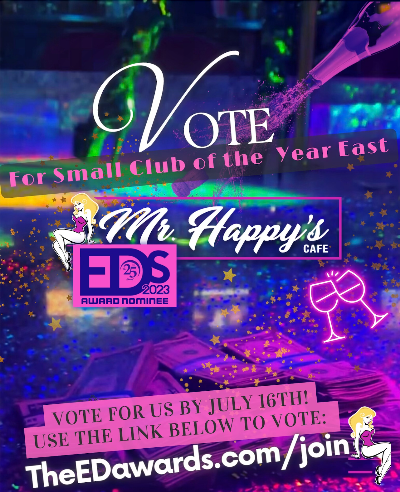 Mr. Happy’s Cafe, located in Waterbury, CT, is Connecticut’s premier total adult entertainment bar. We are a hometown bar with an upscale atmosphere. Customers from New Haven, CT to Danbury, CT are guaranteed to have a great time enjoying our beautiful entertainers, classic ambiance and excellent beer and cocktails. Take the time to enjoy a night out at Mr. Happy’s Cafe, where you always leave with a smile.